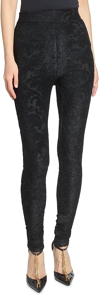 Balmain’s leggings feature baroque-inspired jacquard motifs and a zip at the back.