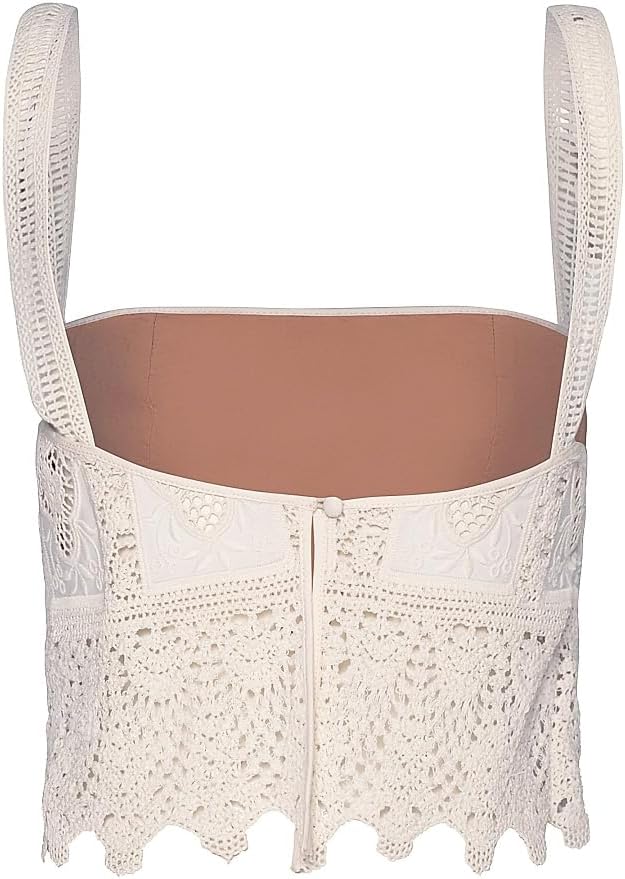 From the Micaela Collection. Johanna Ortiz’s cropped Casablanca top is embellished with floral embroidery and a scalloped hem.