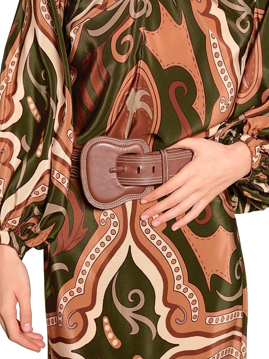 From the Micaela Collection. Crafted of luxurious silk, Johanna Ortiz’s Nuevos Territorios maxi skirt styled with a bold geometric print.