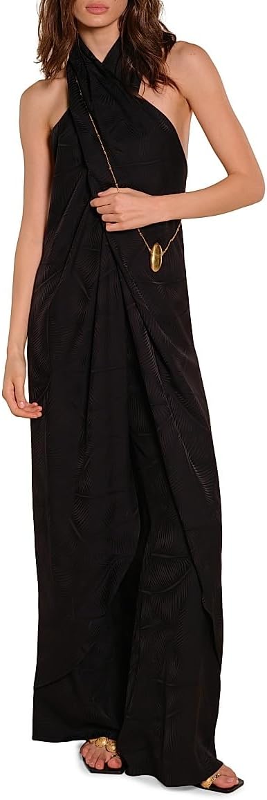 From the Micaela Collection. Draping elegantly from the crossed halterneck, Johanna Ortiz’s Silent Water top features a longline silhouette, jacquard detailing, and airy movement.