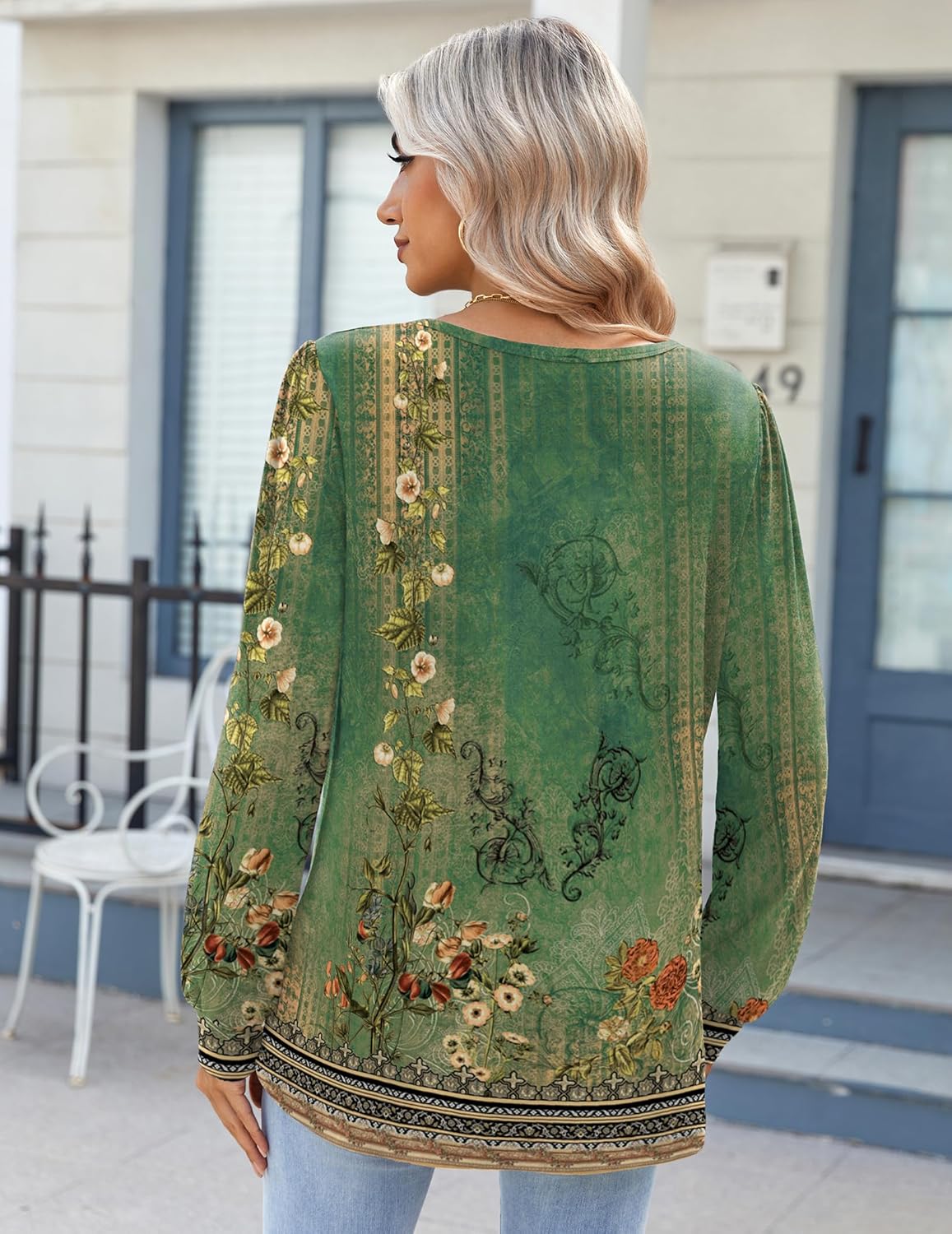 - Features: The fall tunics features long sleeve, v neck button ups, floral printed, loose fit. Classic and basic shirts.
